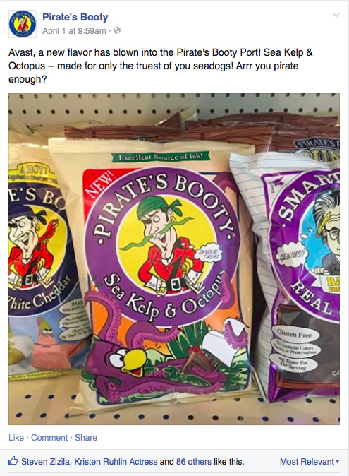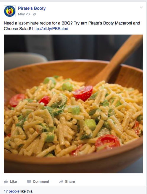 social (FB,TW,IG) Who says pirates are anti-social? Since winning the digital and social business for Pirate’s Booty as of January 2015, fan engagement has increased more than 15%. With a focus on simple recipes, meal pairings, relevant content and DIY craft projects, our FB audience alone has increased over 25%.